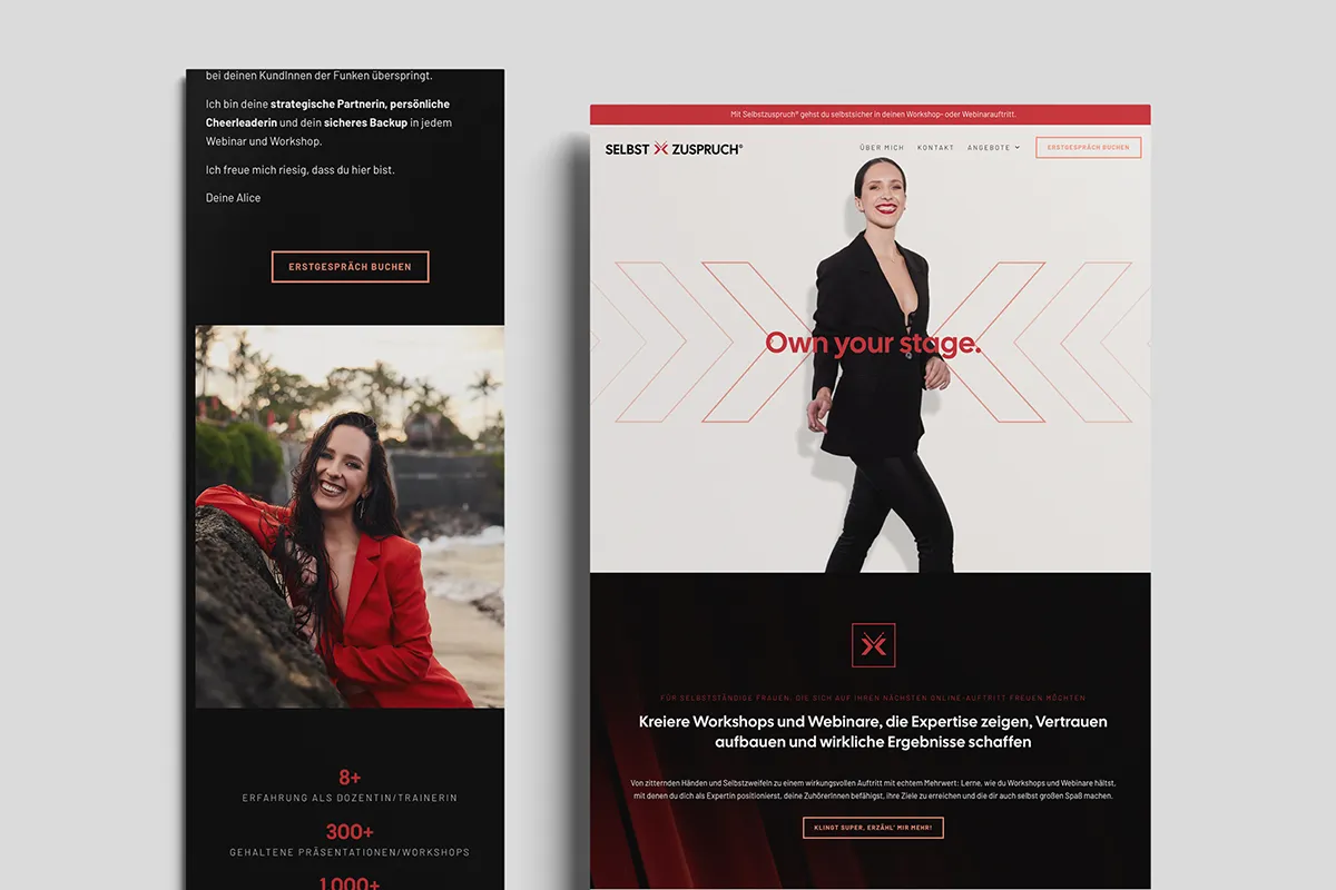 Das Ziel: Alices Expertise und besondere Positionierung nicht nur inhaltlich, sondern auch visuell und strukturell klar herauszustellen.